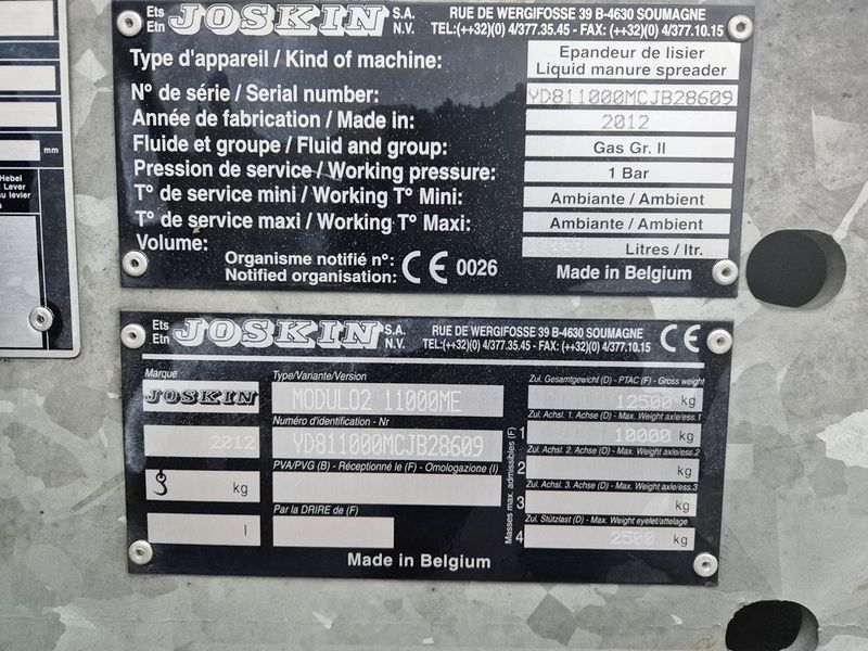 Joskin Modulo 2 Güllefass 11.000 l (BJ: 2012) mit hydr. gefederter Deichsel, Talfahrtsausbringung, Druckluftbremse mit ALB-Regler, Kotflügel, K80 Kugelkopf, Saugarm Frontjumbo 200 inkl. hydr. Steuerblock, Jurop Pumpe PN 106, Schalldämpfer inkl. Öl Abscheider, Möscha S 68 Niro-Schwenkverteiler, Vorbereitung für Schleppschuhverteiler, Schlauchablage, Bereifung: Trelleborg Twin Radial 850/50 R 30,5, Beleuchtung und Gelenkwelle einseitig Weitwinkel - Ihr Ansprechpartner - Hr. Watzenböck Mario