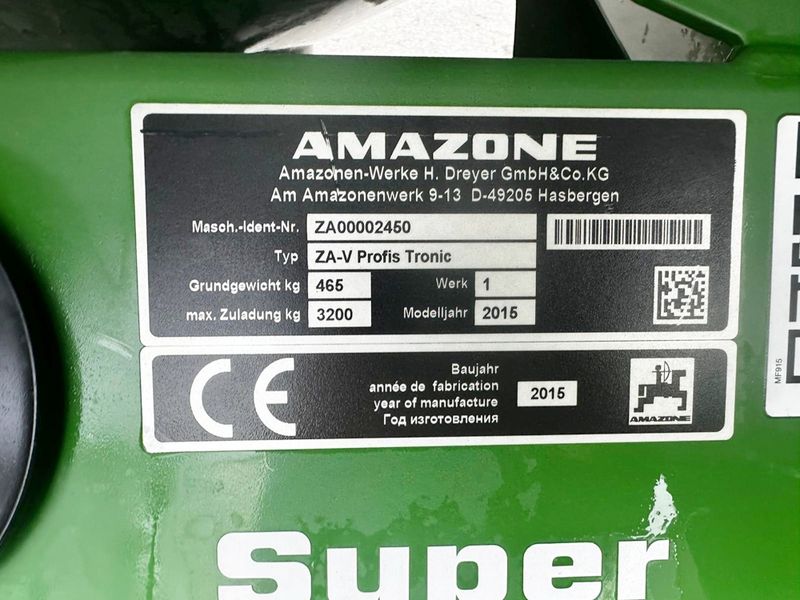 Amazone ZA-V 1700 Profis Tronic Wiegestreuer (BJ: 2015 / Ersteinsatz: 2016) - Behällterinhalt: 1.700 l in Isobusausführung (ohne Terminal, ohne Grundausstattung) mit Gelenkwelle mit Reibkupplung, Streuscheibensatz V-Set 1 (Arbeitsbreite: 10-21 m), 200 Hz Wiegetechnik, Schmutzfänger, Beleuchtung, Grenzstreusystem Limiter V+ rechts, Roll- und Abstellvorrichtung schwenkbar, Neigungssensor und Abdeckrollplane mech. klappbar - Ihr Ansprechpartner - Hr. Pöcherstorfer Manuel