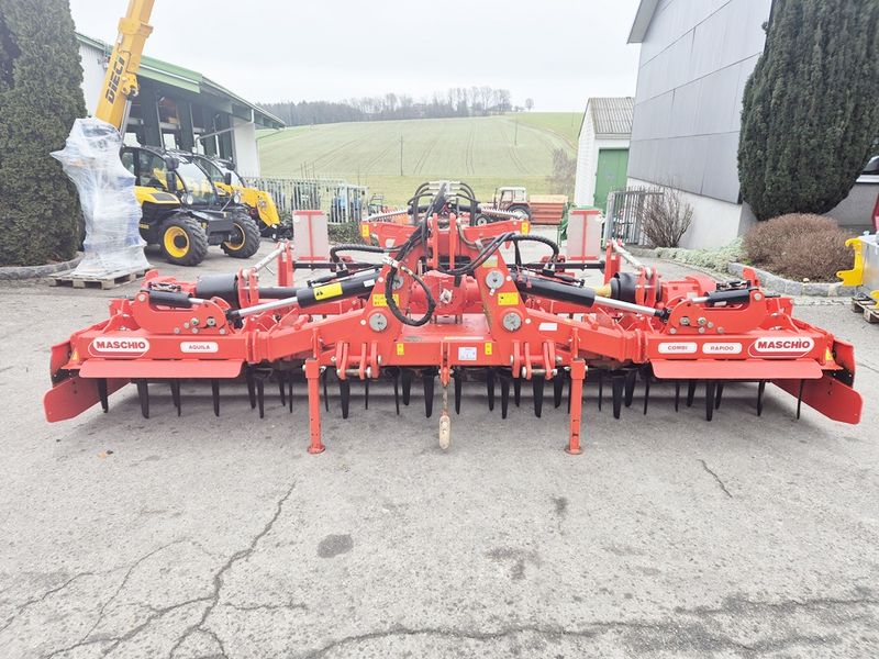 Maschio Aquila Rapido Plus 4600 Kreiselegge (BJ: 2019) mit 4,6 m Arbeitsbreite für Schlepper bis 300 PS, hydr. Klappung, 2 x Zahnpackerwalzen Dm 500 mm á 2,3 m, Ölbad-Wechselgetriebe für 4 Geschwindigkeiten, seitl. Gelenkwelle mit Überlastsicherung, Universal-Dreipunktbock Kat. III mit beweglichen und verstellbaren Unterlenkanschlüssen, Zinkenschnellwechselsystem Quick-Fit, hintere Krümelschiene, gefederte Seitenschilde mit höhenverstellbaren Verschleißblechen, Zapfwellendurchtrieb, verstärkte Bodenwanne, Steinabweiser, Walterscheid-Gelenkwelle, Beleuchtung mit Warntafeln nach hinten, Floating Kit (hydraulische Vorrichtung zur Wahl zwischen starrer oder schwimmender Arbeitsstellung) und neue Zinken (18+18 Stück) - Ihr Ansprechpartner - Hr. Karl Deschberger