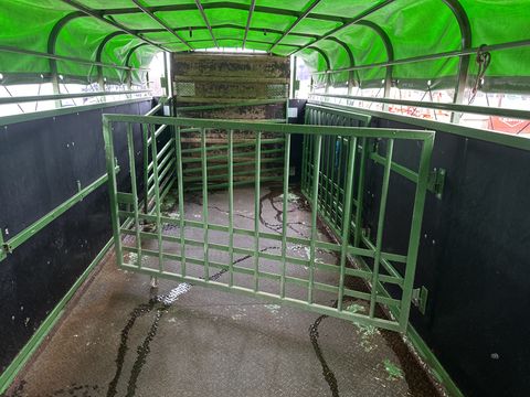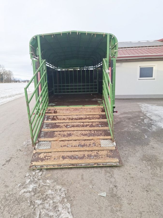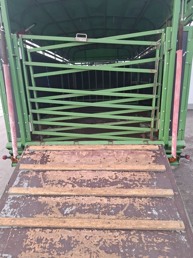 Pronar T046/1 Schweineanhänger (BJ: 2014) für Traktor mit Druckluftbremse, Stützrad, Tandemachse, Bereifung: 355/65-16, Tür vorne links, Heckklappe mit Feder, Planengestell mit Plane, inneres Trenngitter sowie Gitter zusätzlich und Beleuchtung - Ihr Ansprechpartner - Hr. Christoph Deschberger