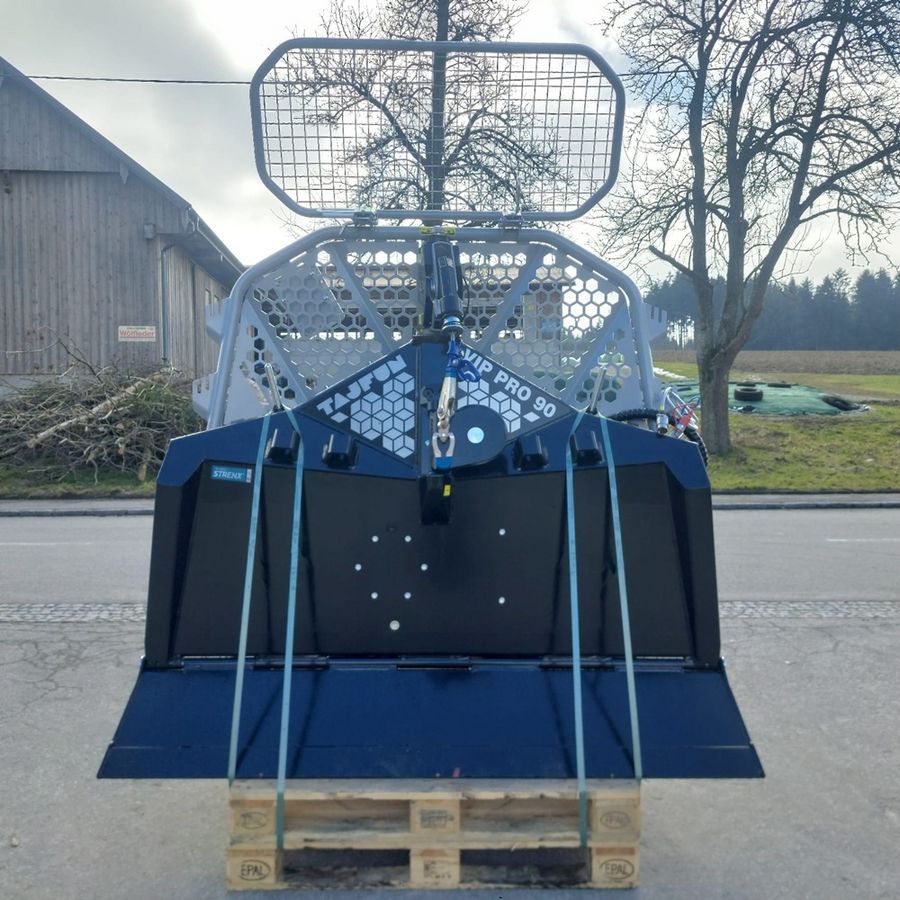 Tajfun VIP Pro 90 Seilwinde - Zugkraft: 9 to für Dreipunktanbau Kat. II und III mit Stirnradgetriebe, untere Umlenkrolle, Werkzeugkasten, klappbares Schutzgitter, Seilausstoß mit Abspulautomatik und stufenloser Geschwindigkeitsregulierung, Endabschalter, hydr. bewegliches Klappschild 2,02 m und SOMA D-1 F10 ET Profifunk, 100 m Seil Dm 13 mm hochverdichtet (2.060 N/mm²), 2 Seilgleiter blau 7/8 mm, Seilendstück SES drehbar 140kN und Gelenkwelle KL4 - Ihr Ansprechpartner - Hr. Christoph Deschberger