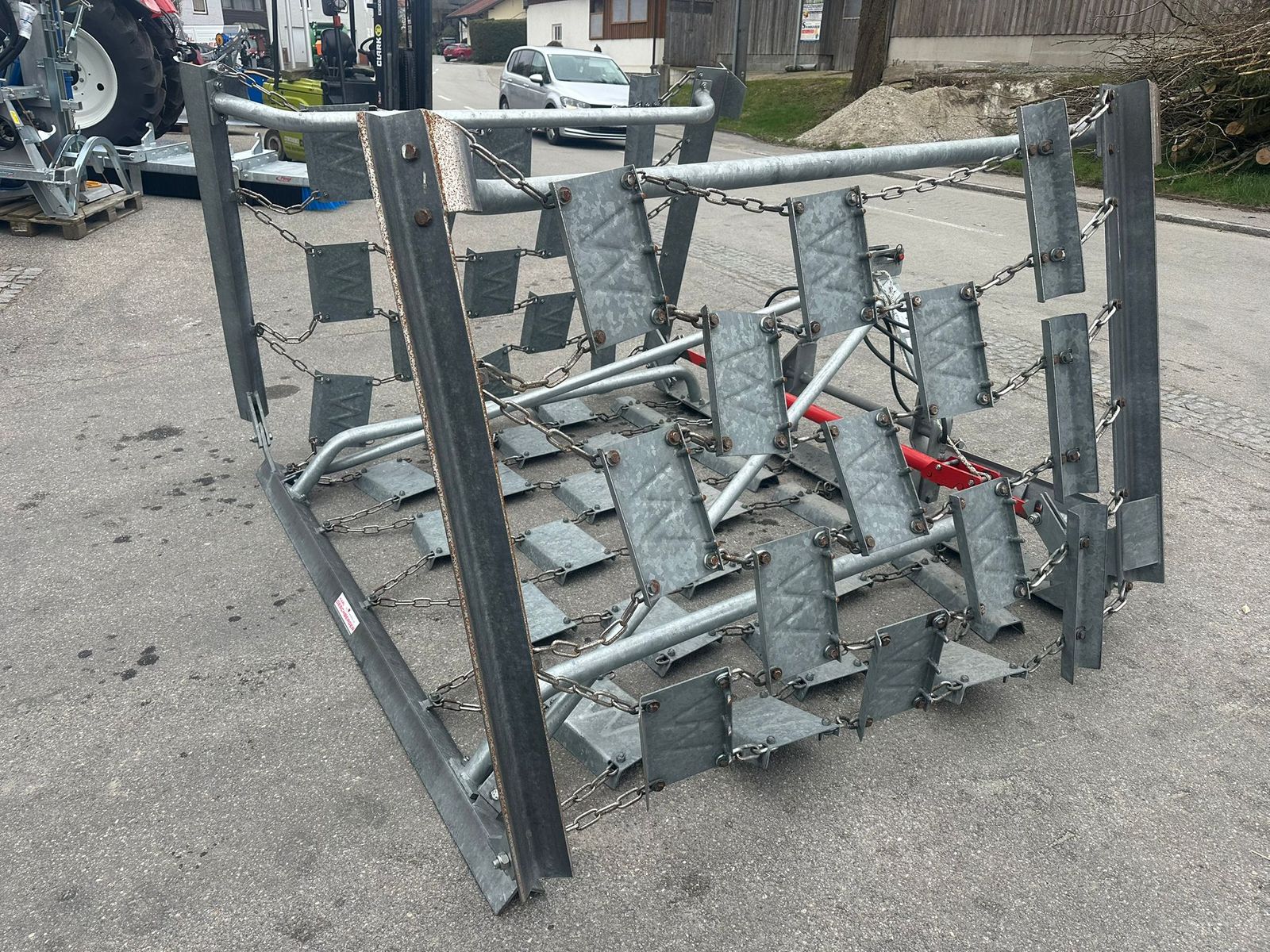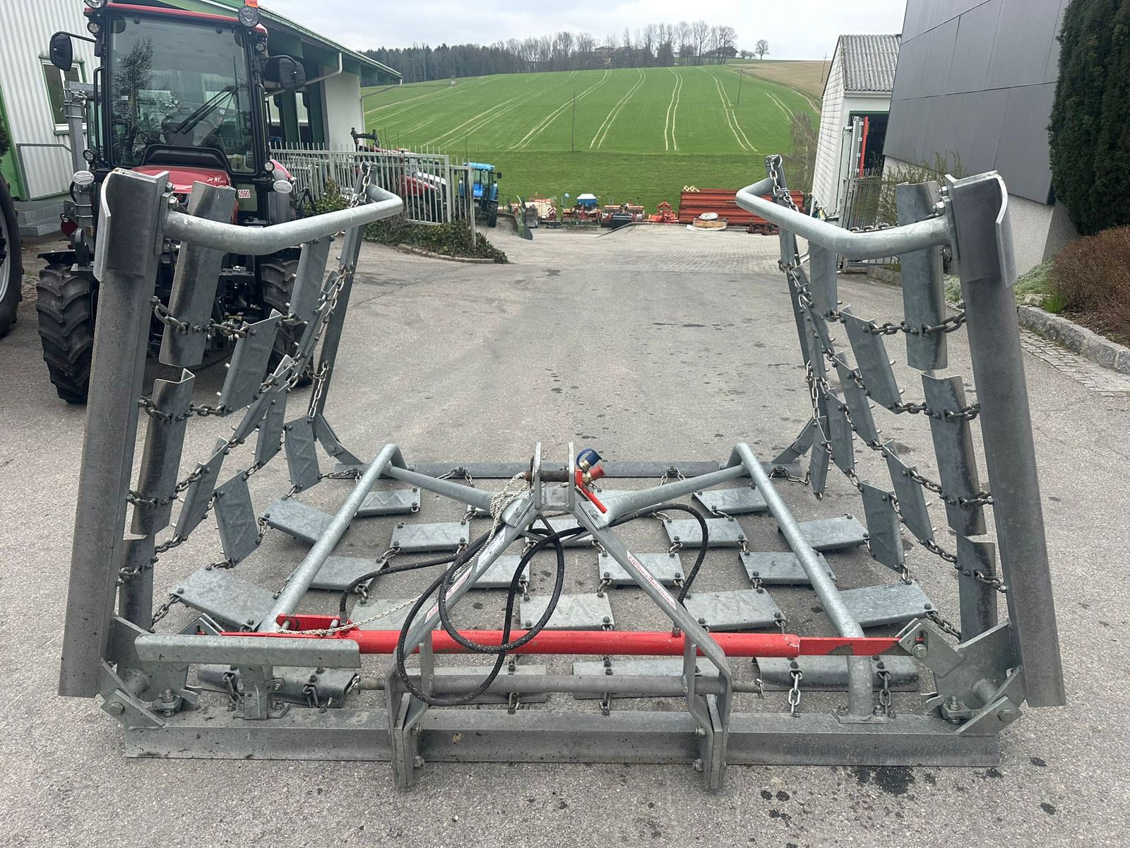 Wölfleder 5,1 m Wiesenegge mit Dreipunktanbau Kat. 2, 5 Reihen Reibleisten (4 Reihen Zinken aus hochfestem Stahl und eine Reihe Maulwurfhaufen-Abscherschienen), Gelitkufen und hydr. Klappung - Ihr Ansprechpartner - Hr. Pöcherstorfer Manuel